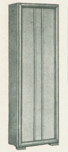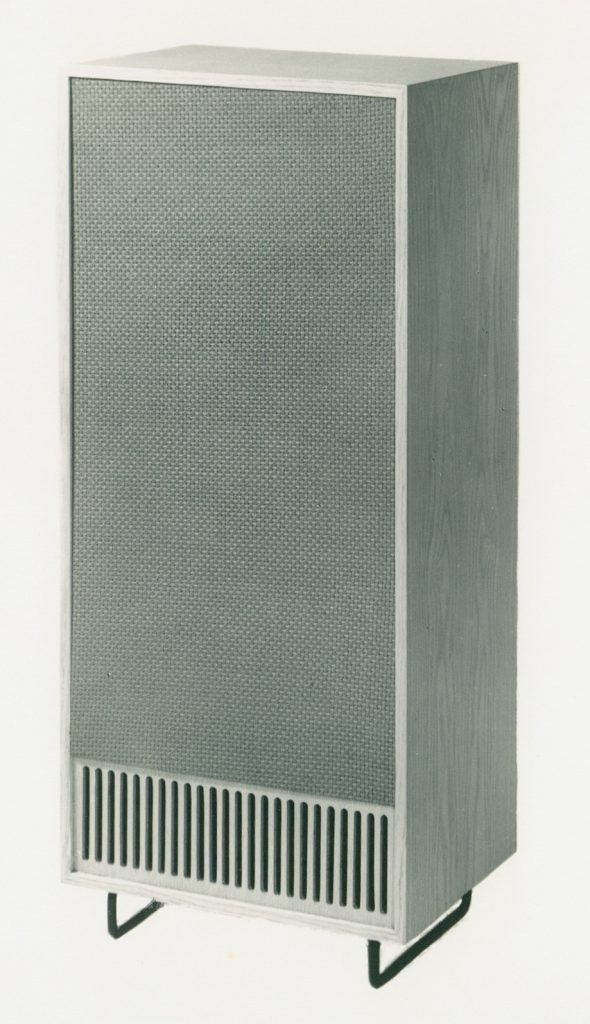 Diese Tonsaule dient zur Großraum-beschallung, wobei die Lautsprecher-anordnung in einem Eichegehäuse, nach Wunsch hell oder dunkel, eingebaut ist.